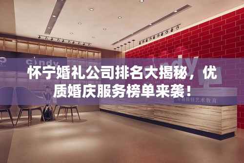 在怀宁这个美丽的城市,婚礼文化源远流长,随着时代的发展,婚礼行业逐渐繁荣,各种婚礼公司如雨后春笋般涌现,本文将为您介绍怀宁婚礼公司的排名,以助您在挑选婚礼服务时做出明智的选择。