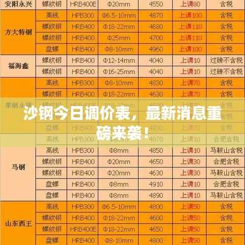 沙钢集团今日发布的调价表最新消息引起了广泛关注,此次调价是沙钢集团根据市场变化和自身情况做出的决策,旨在更好地满足客户需求,保持企业的竞争力,沙钢集团将继续密切关注市场动态,加大技术创新和产品研发力度,为客户提供更优质的产品和服务。