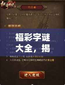福彩字谜,一种富有创意和趣味性的彩票游戏形式,结合了汉字的魅力与数字的乐趣,随着互联网的普及,越来越多的人开始关注福彩字谜,希望通过解谜获得意外之喜,本文将带你走进福彩字谜的世界,一起探索百度下的神秘宝藏。
