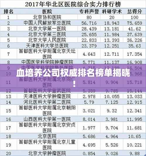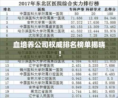 随着医疗行业的不断发展,血培养公司作为其中的一部分,也在逐渐壮大,本文将介绍全球血培养公司的排名,以便读者了解这些公司的实力和业务范围。