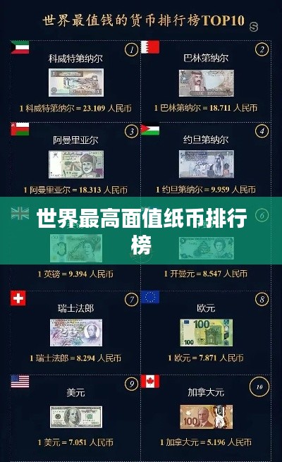 世界最高纸币排名中的纸币因其独特性、稀有性和价值而备受瞩目,这些纸币不仅具有交易功能,更是文化和历史的载体,它们成为了收藏家们的热门选择,也成为了投资者们关注的焦点,无论是对于收藏家还是投资者来说,了解这些纸币的背景和价值都是非常重要的。