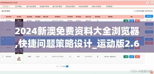 随着信息时代的到来,获取准确、及时的政策信息已成为公众的重要需求,在澳门特别行政区,这一需求尤为显著,为了应对这一挑战,澳门特区政府不断加强政策宣传和信息透明度,在此背景下,一款名为“2024新澳免费资料大全浏览器,快捷问题策略设计_运动版2.698”的浏览器应运而生,专为满足公众对政策信息的需求而设计,本文将详细介绍这款浏览器的功能亮点,并探讨其在快速检索政策文件方面的策略运用。
