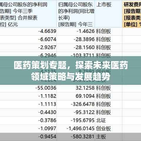 随着科技的不断进步和人们健康需求的日益增长,医药行业正面临前所未有的发展机遇与挑战,本文将围绕“医药策划专题”展开,从当前医药行业的现状、发展趋势、策划要点及其策略等方面进行深入探讨,旨在为未来医药领域的发展提供有益的参考。
