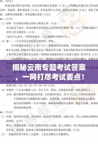 云南专题考试是对云南地区历史、文化、地理等多方面知识的综合考察,旨在加深考生对云南地区的了解,本文将围绕“云南专题考试答案”这一主题展开,为考生提供相关的知识点解析和答案分析。