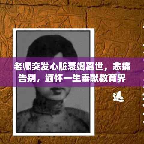 教育界传来一则令人痛心的消息,一位杰出的老师因突发心脏衰竭离世,这位老师的离世不仅给学生们带来了巨大的悲痛,也引起了社会各界的广泛关注和深思。