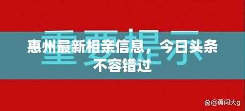 随着社会的快速发展,相亲已成为现代人寻找伴侣的一种重要方式,在惠州这座美丽的城市,最新的相亲信息备受关注,本文将为大家带来惠州今日头条的最新相亲内容。