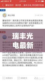随着科技的飞速发展,光电产业日新月异,瑞丰光电作为国内光电领域的领军企业,其最新动态备受关注,本文将为您详细介绍今日瑞丰光电的最新消息。